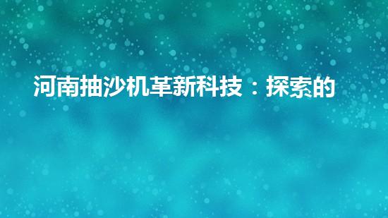 河南抽沙機革新科技:探索的未來?